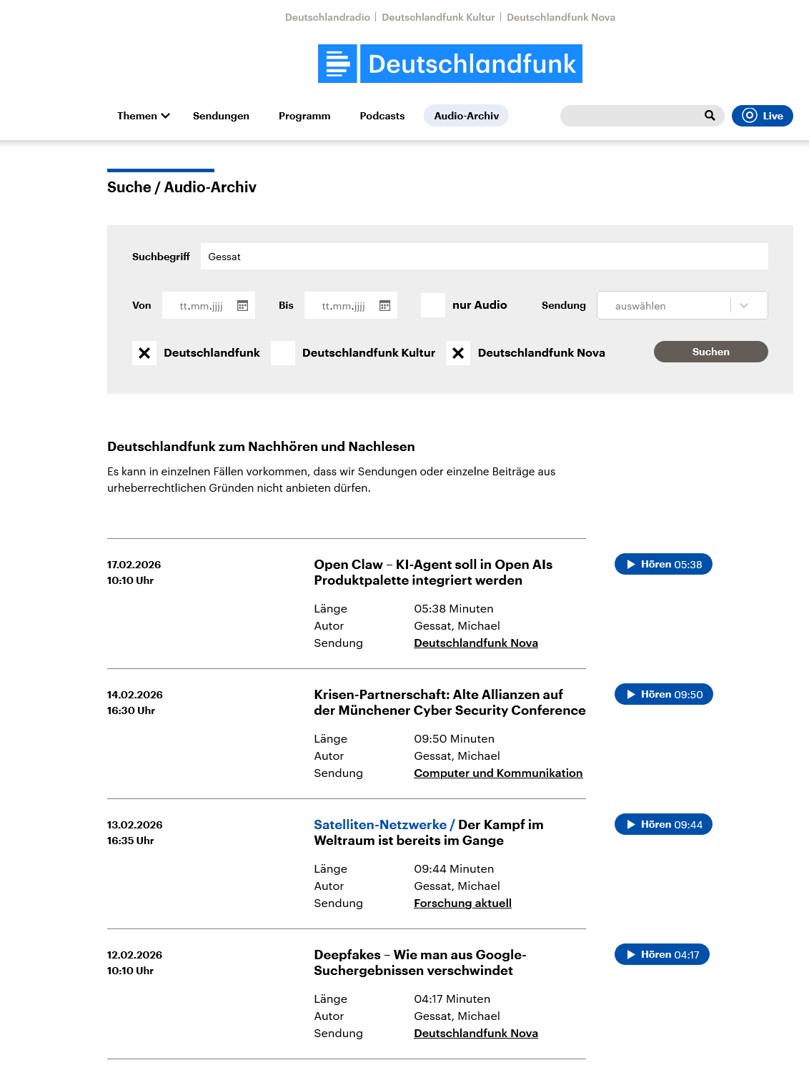 Aktuelle Beiträge im Audio-Archiv des DLF